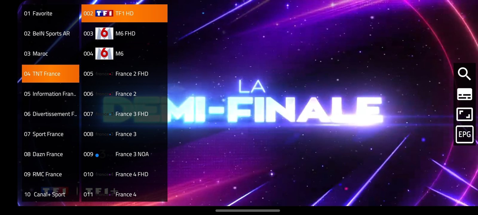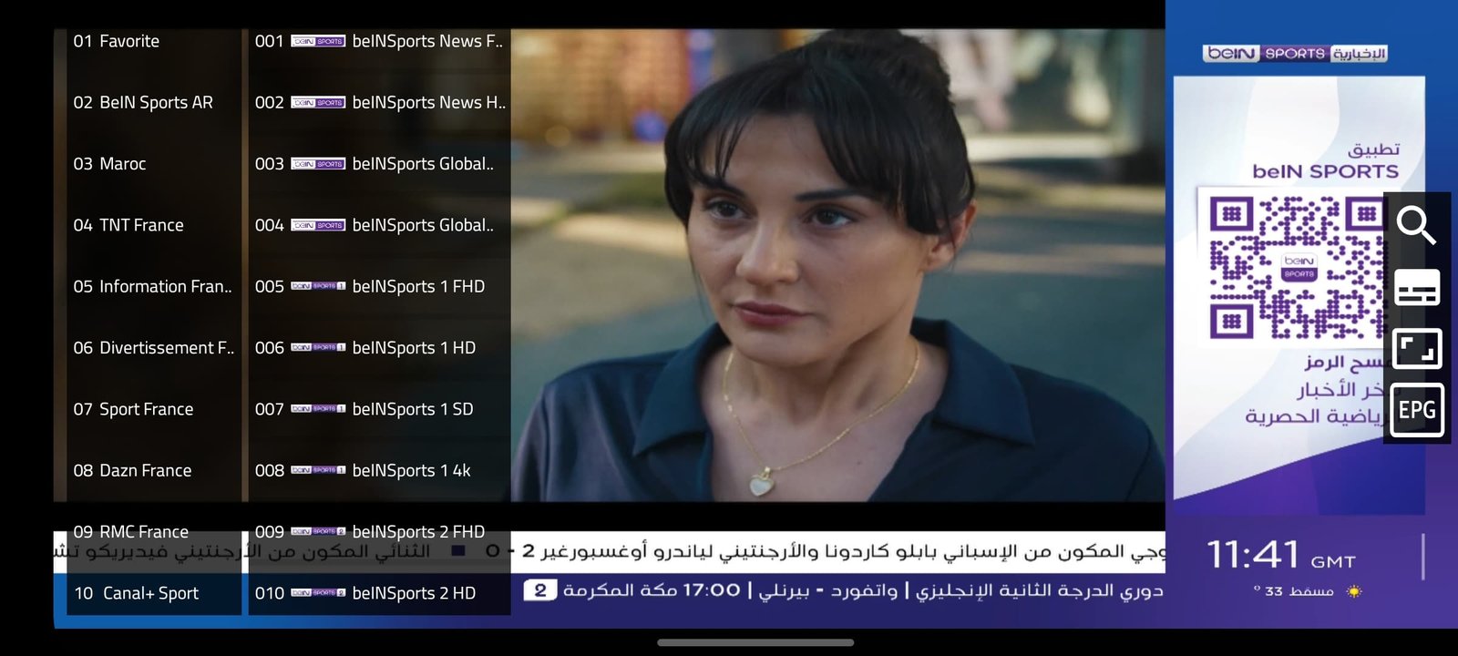 Chaînes en direct (sports, cinéma, etc.)